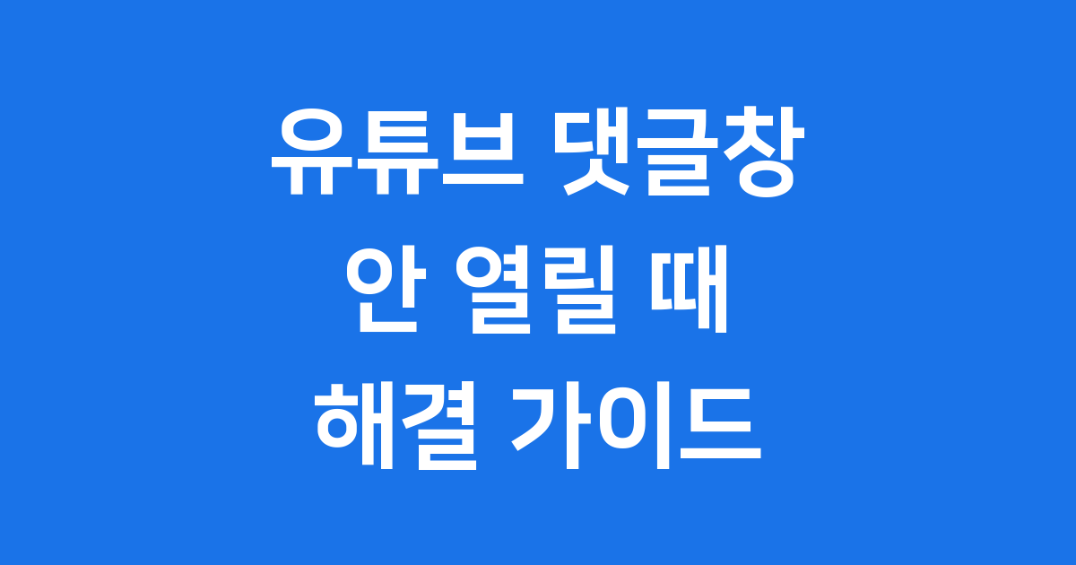 유튜브 댓글창 안열림 최신 해결법 2026년